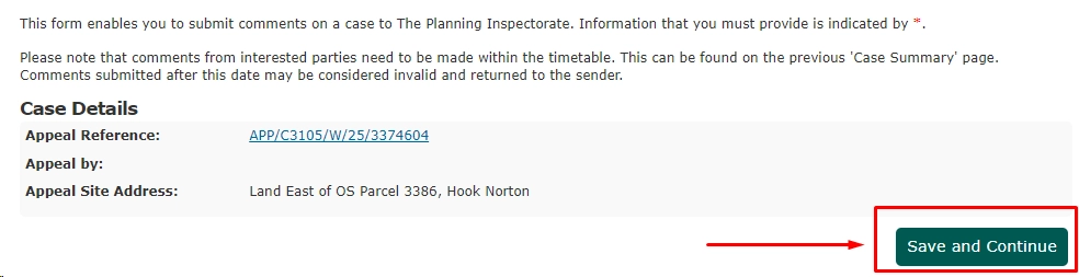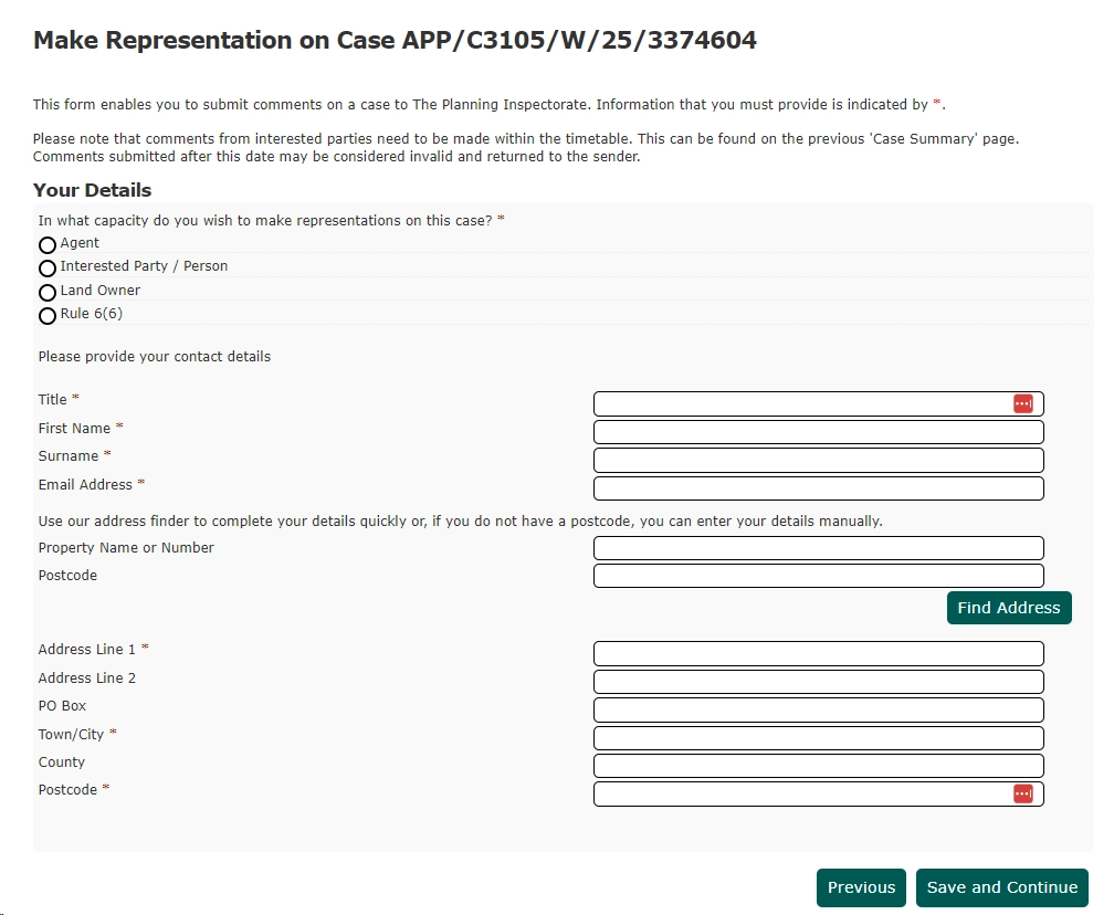 This then takes you into the Form itself where you enter your details and can leave your comment: